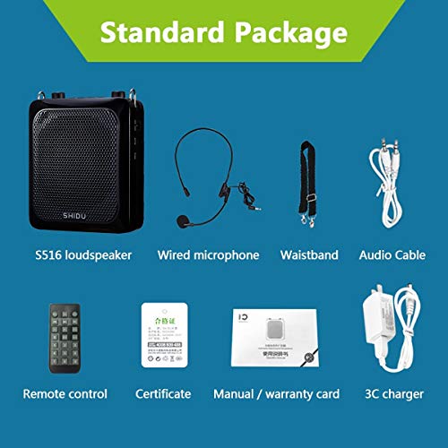 Specification: Bluetooth Spraakversterker draagbare, SHIDU Persoonlijke Spraakversterker 18W met bekabelde microfoon Headset draagbare oplaadbare PA-systeem stemversterker voor leraren, reizigers, vergaderingen