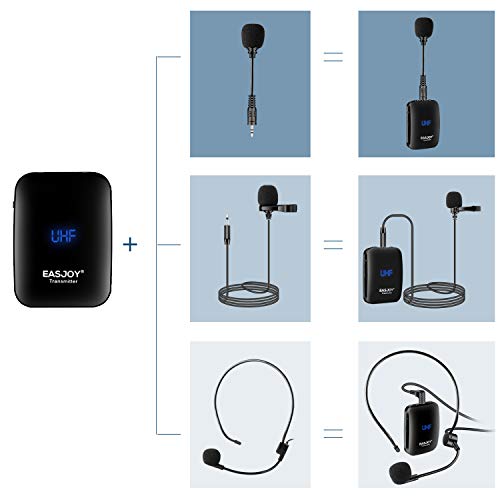 【Upgrade draadloos microfoon systeem】● Goedgekeurd de nieuwste UHF-technologie tot 131 ft lange zenderafstand met helder geluid. Geen vertraging, geen straling, anti-howling/anti-jamming. ● Biedt 3 soorten UHF hoge gevoeligheid en stabiele microfoons voor optie: hoofdbeugelmicrofoon/reversmicrofoon/staande microfoon. ● Geüpgraded receiver is uitgerust met led-indicator van de kanaalfrequentie, volume en powerstatus.