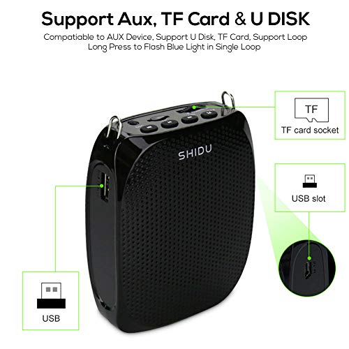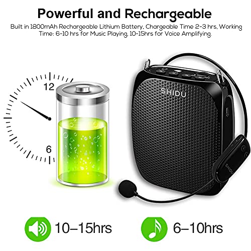 Specification: Spraakversterker Draagbare, SHIDU Spraakversterker draadloos Stemversterker luidspreker 10W oplaadbare PA-systeem luidspreker met UHF microfoon Headset voor leraren, yoga, reisgidsen, trainers