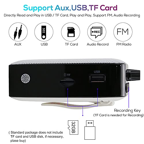 ❤ 『PROJECTEER JE STEM EN ONDERSTEUNING 』- De draagbare stemversterker is ontworpen met een supervermogen van 15 W, biedt een heldere, natuurlijke en kristalheldere stem, geluidsdekking tot 25.000 vierkante meter en ideaal voor een groep van 200-300 mensen. Ondersteunt TF-kaart, U-schijf en AUX-lijningang om muziek af te spelen, verander de stemversterker eenvoudig in een muziekluidspreker.