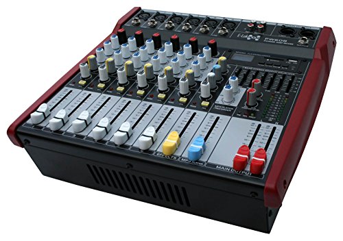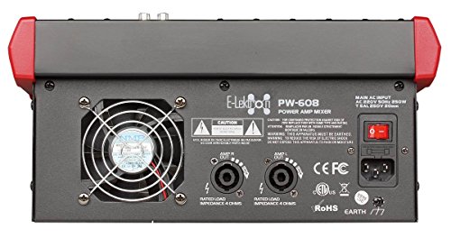 E-Lektron PW-608 live power-mixer 6-kanaals + stereo MP3 mengpaneel met 2x 250W eindversterker