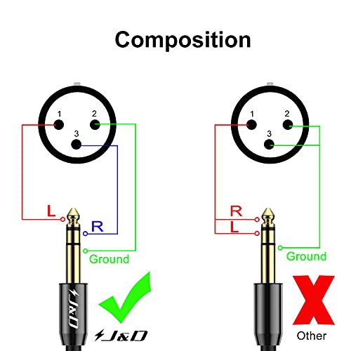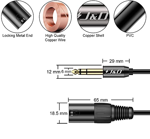 Specification: J&D 1/4 naar XLR Kabel, TRS 6,35 mm (1/4 inch) naar XLR Mannelijk naar Mannelijk Evenwichtige Verbindingskabel, 1.8 Meter