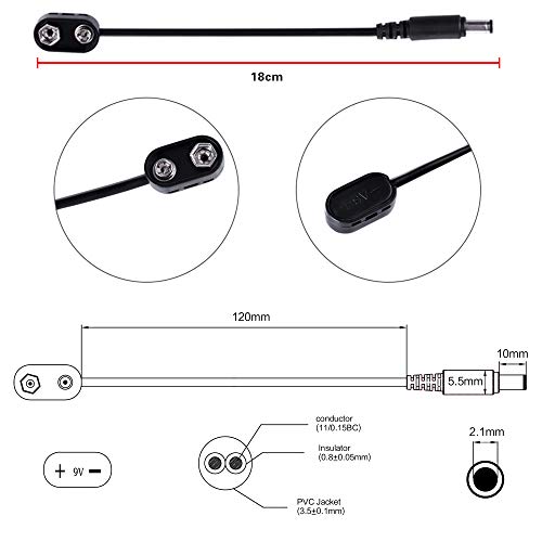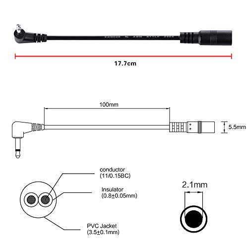 9 V rechte hoek 3,5 mm stekker (1/8 “) – stekker met 2,1 * 5,5-bus, kabellengte: 17,7 cm