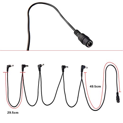 Daisy-chain-splitterkabel met 9 V kan tegelijkertijd vijf gitaarpedalen op een voeding aansluiten. Kabellengte: ca. 160 cm in totaal, 29,5 cm tussen twee stekkers.