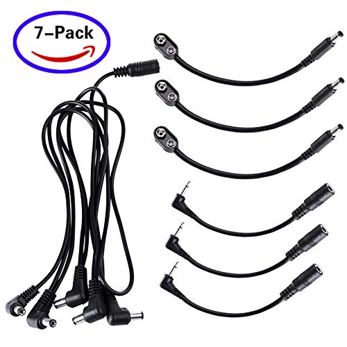 Het pakket bevat 7 kabels voor gitaar-/baseffectpedalen: 5-polige daisy-kettingkabel (1 stuk) + batterijclipkabel (3 stuks) + 3,5 mm voedingsconverterkabel (3 stuks)