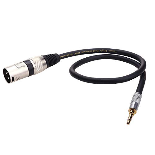 XLR mannelijke connector heeft gegoten trekontlasting om het gewicht van de kabel te ondersteunen; 24k vergulde 3,5 mm TRS-connector heeft 360 graden easy-grip loopvlakken voor veelvuldig loskoppelen en duurzaamheid, het step-down ontwerp van de 3,5 mm connector biedt aansluiting op verzonken poorten.